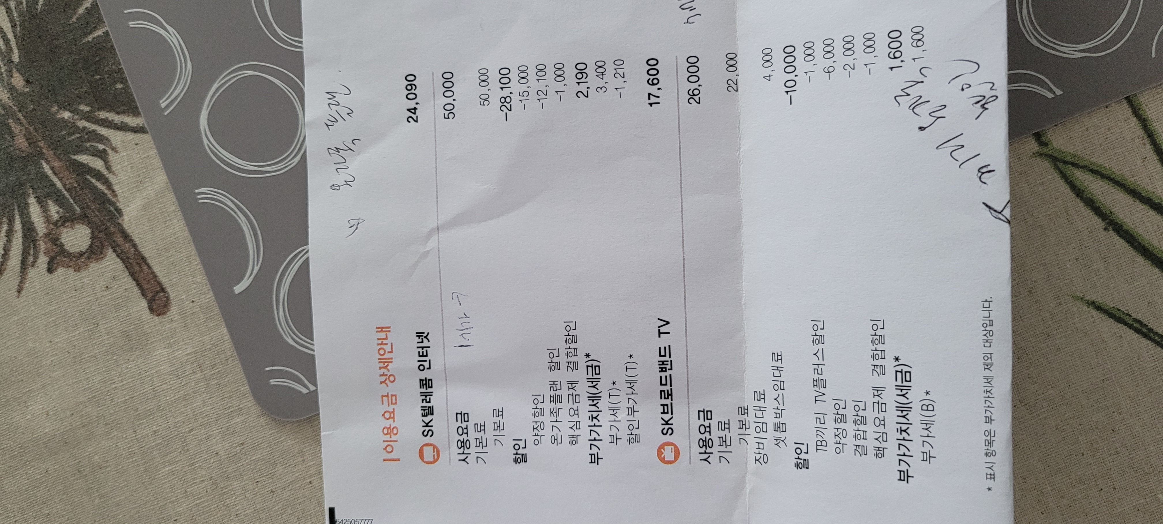 인터넷이랑 B티비에서 저렇게 할인받고