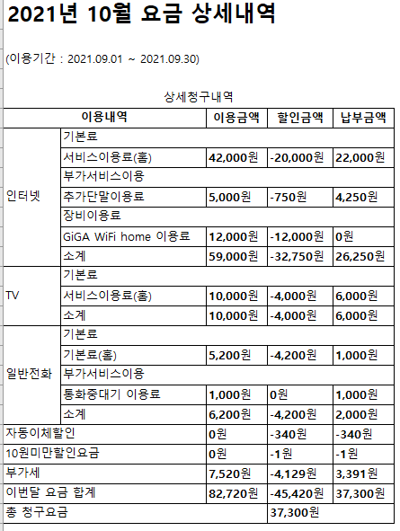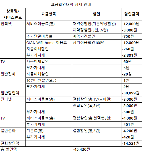 현재 기준 KT인터넷과, 티비 1대, 집전화까지...!!