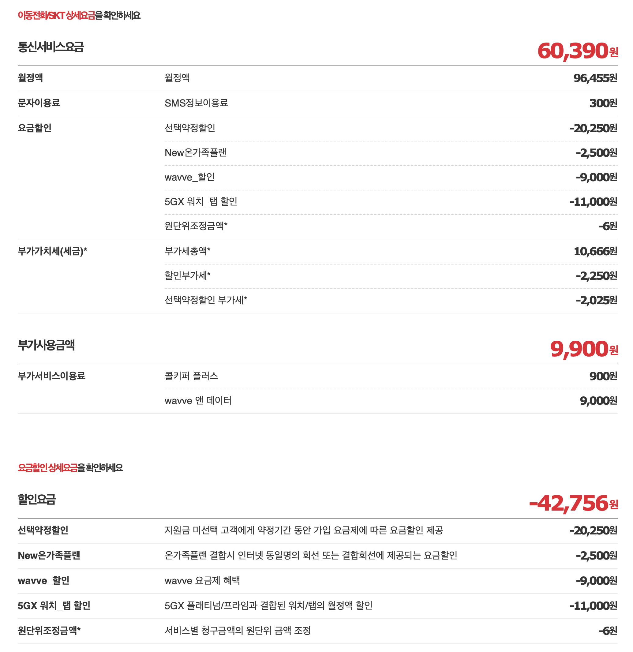 SK폰들에서는 매월 총합 6,600원이 할인되는데용...!!