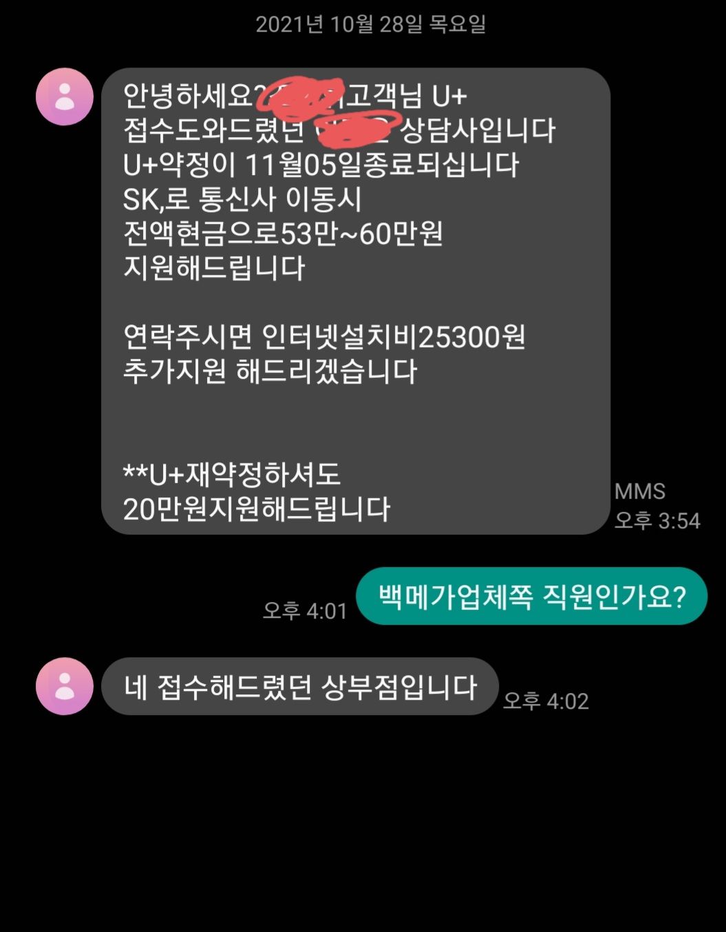 2.즉! 모(?) 업체에서, 불법으로 취득한 개인정보로