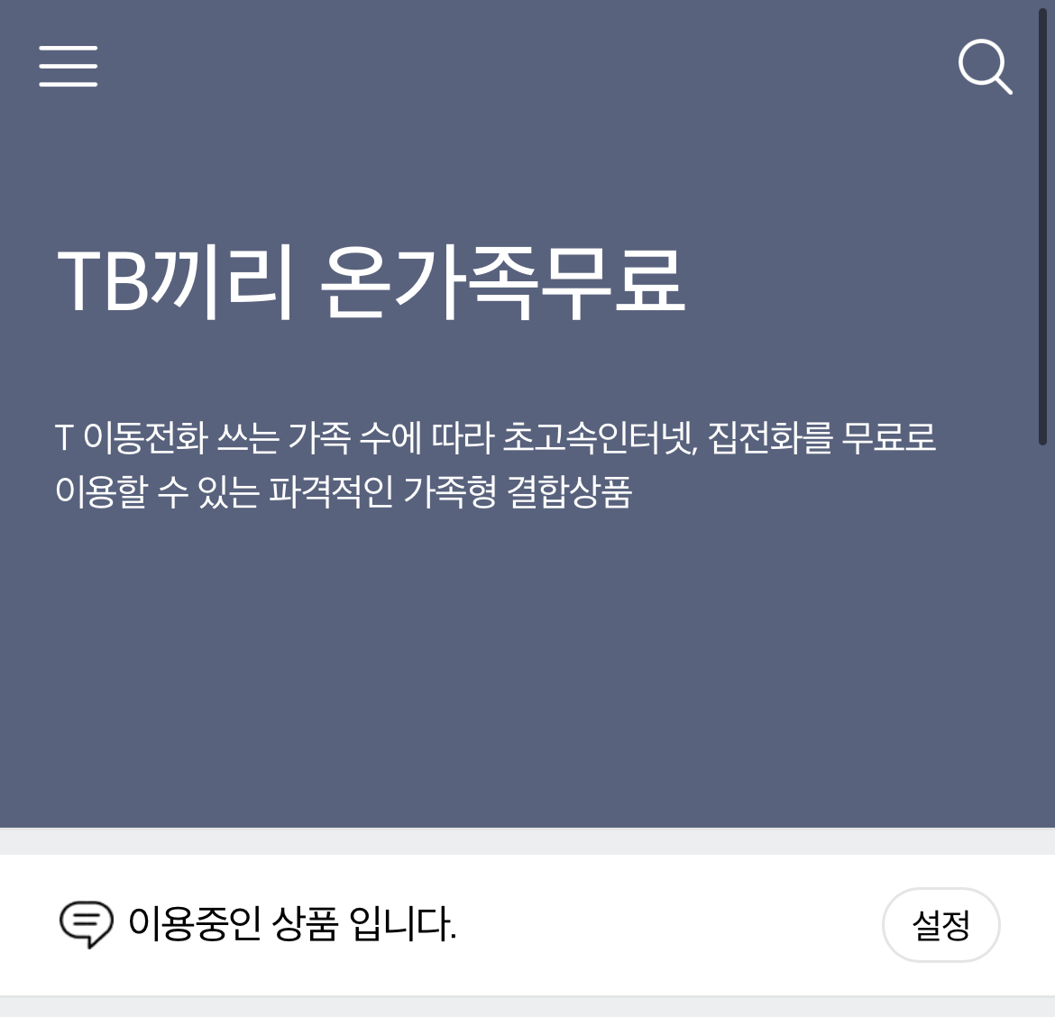 "온가족무료" 결합상품이라면 SKT를 사용 중이실텐데