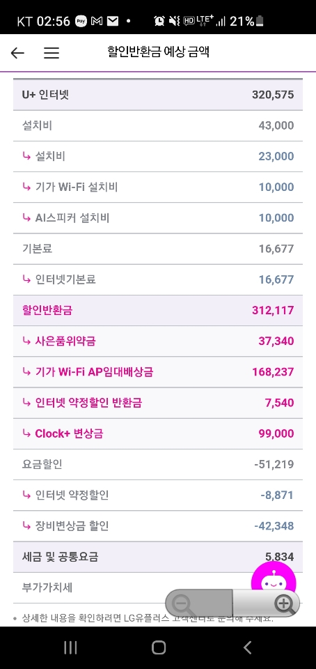 lg조회해보니 지금 해지하면 할인반환금이 32만원이 청구되더라구요 기가와이파이 ai 스피커설치비 clock변상금 오만잡게 다붙어 있는데
