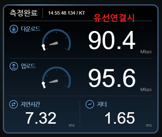 반드시 유선으로 연결된 단말기에서 속도 측정하셔야 하고요~!