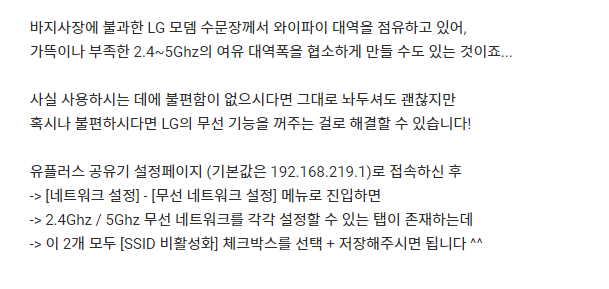 ② 혹은 LG공유기 무선기능을 다시 살려주시고요~