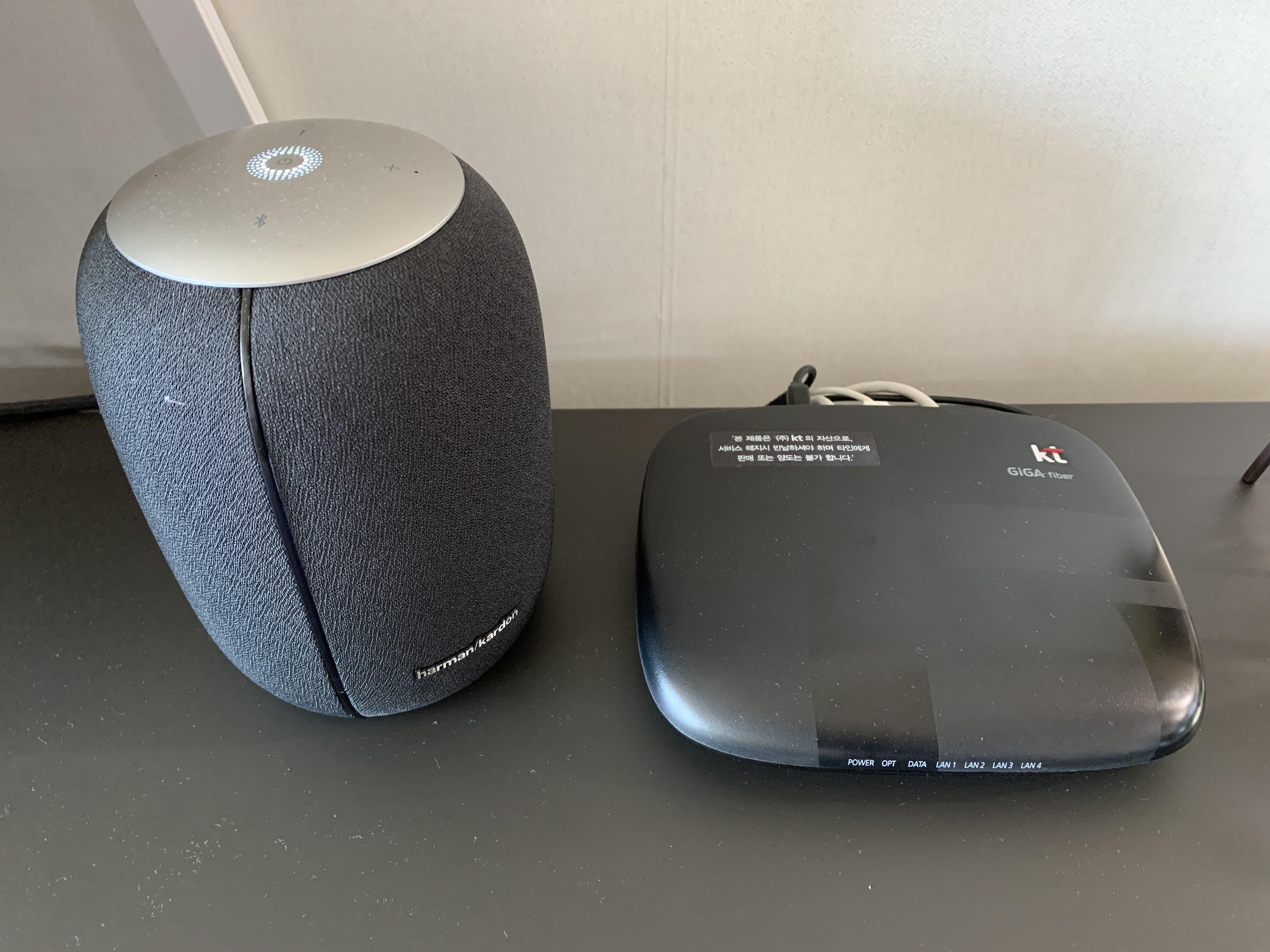 왼쪽에 있는 것이 기가지니2 이고요! (즉, AI스피커 기능이 있는 '셋탑박스' 이지용)