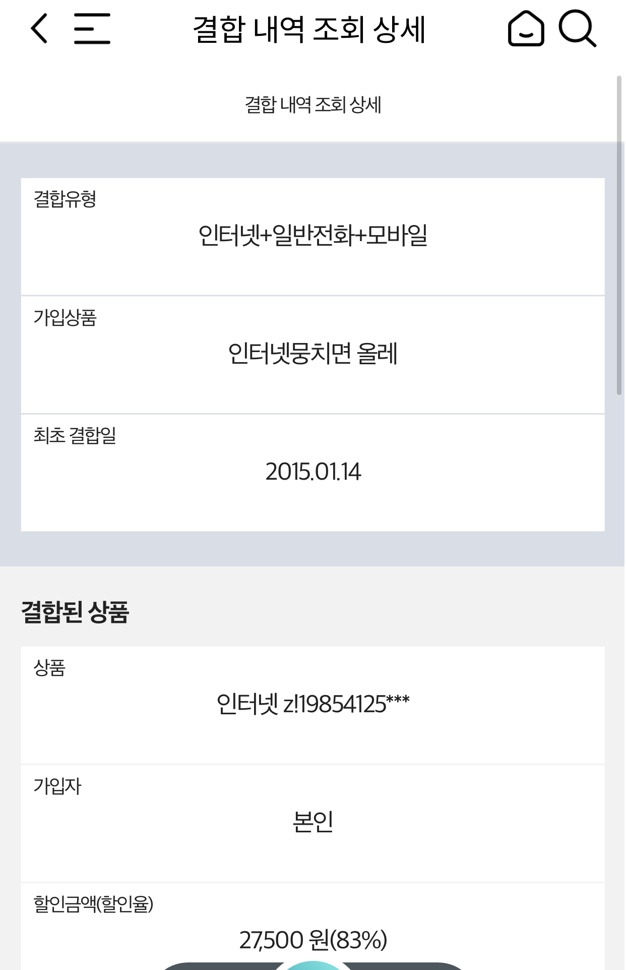 현재 총액 결합과 인터넷 뭉치면 올레 2가지를 결합해서 사용하고 있습니다.