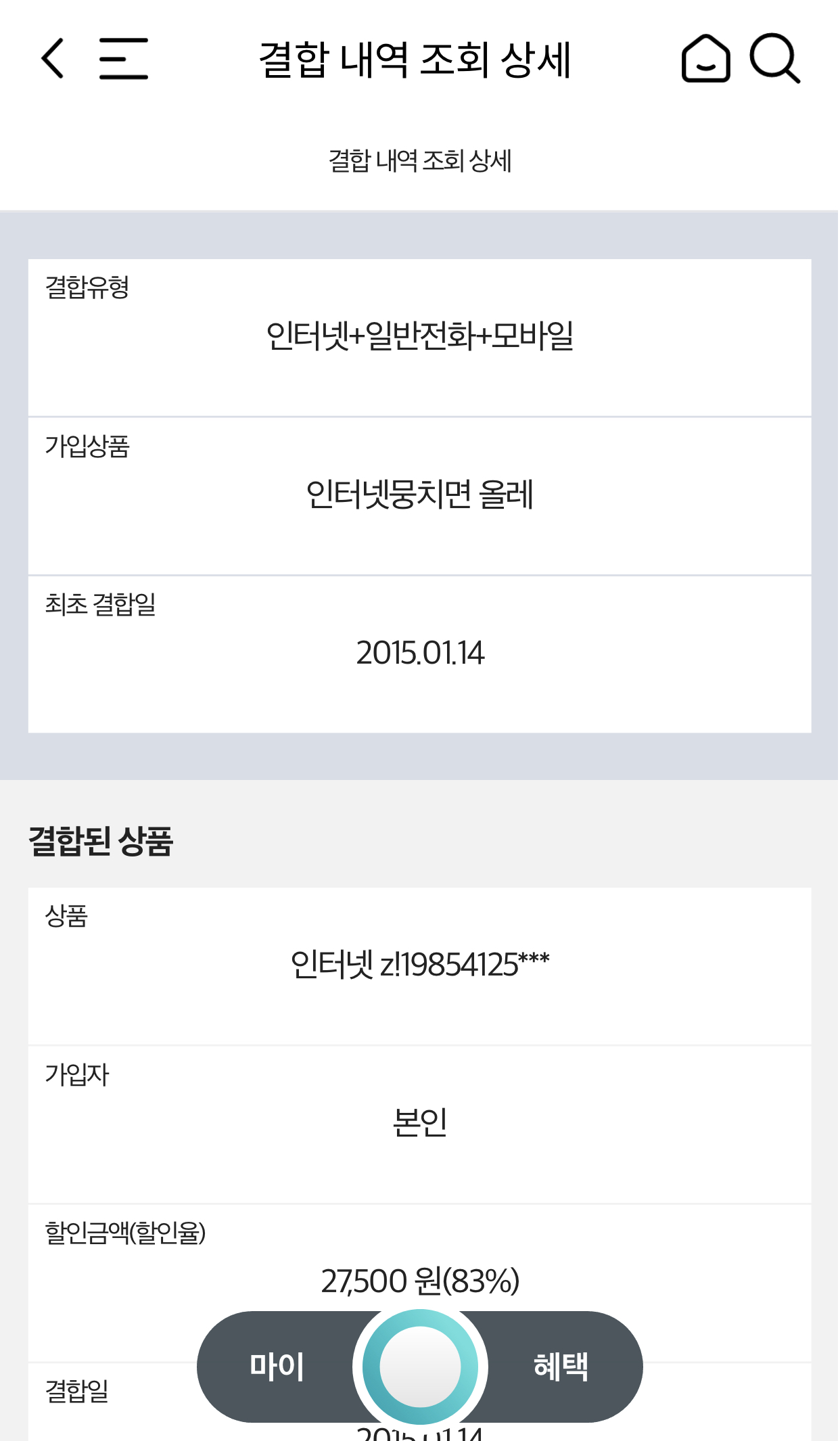 인터넷뭉치면올레에 -> 어머니, 형 휴대폰이 결합되어 있다는 말씀인거죠~!?