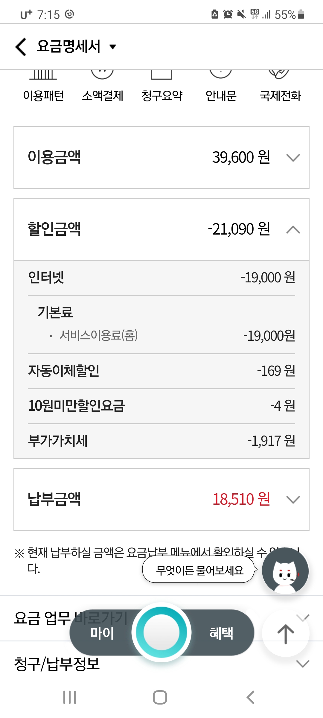 폰에 할인 결합 된거 없음