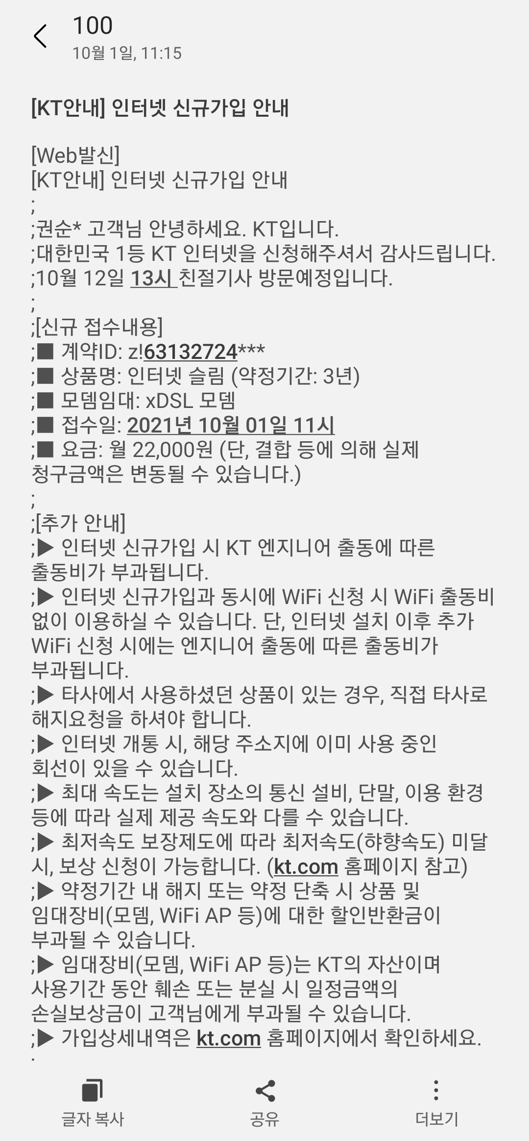 KT측에서 발송드린 문자보고 깜짝 놀라셨지요? ^^;;;