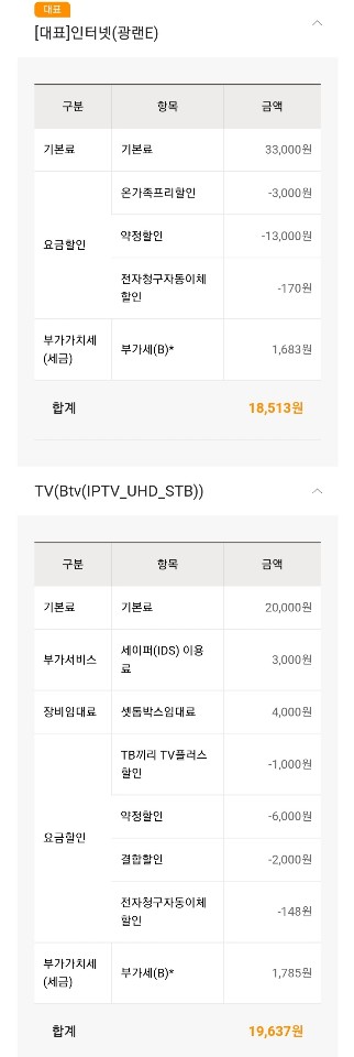 LG or KT인터넷 + 휴대폰 = 결합을 적용하신다면~~??