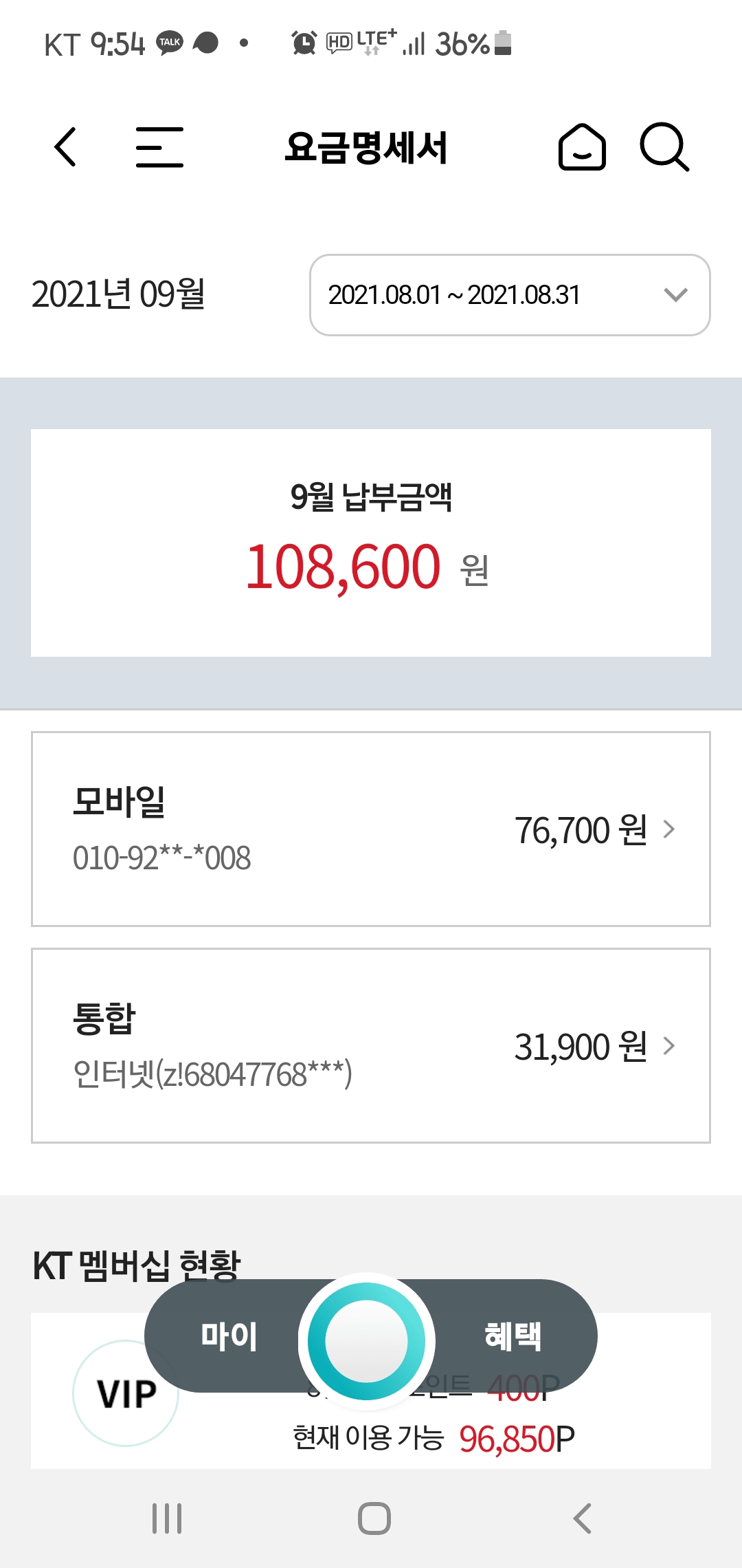 * KT휴대폰 = 총 2회선 (둘다 고가 요금제 / 약정 1년 남음)