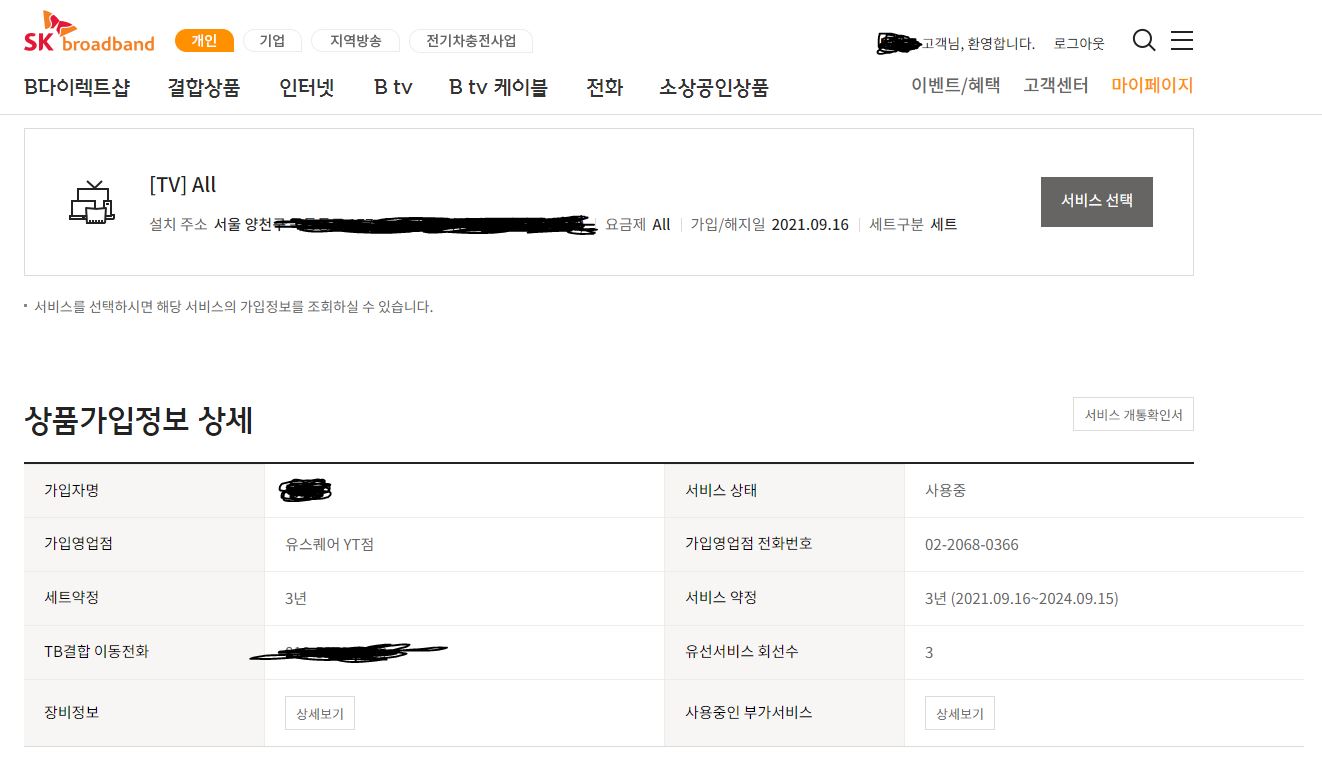 참고로.. 이용중인 서비스(인터넷/IPTV/전화/핸드폰)가 한 번에 조회되지는 않아서요..!