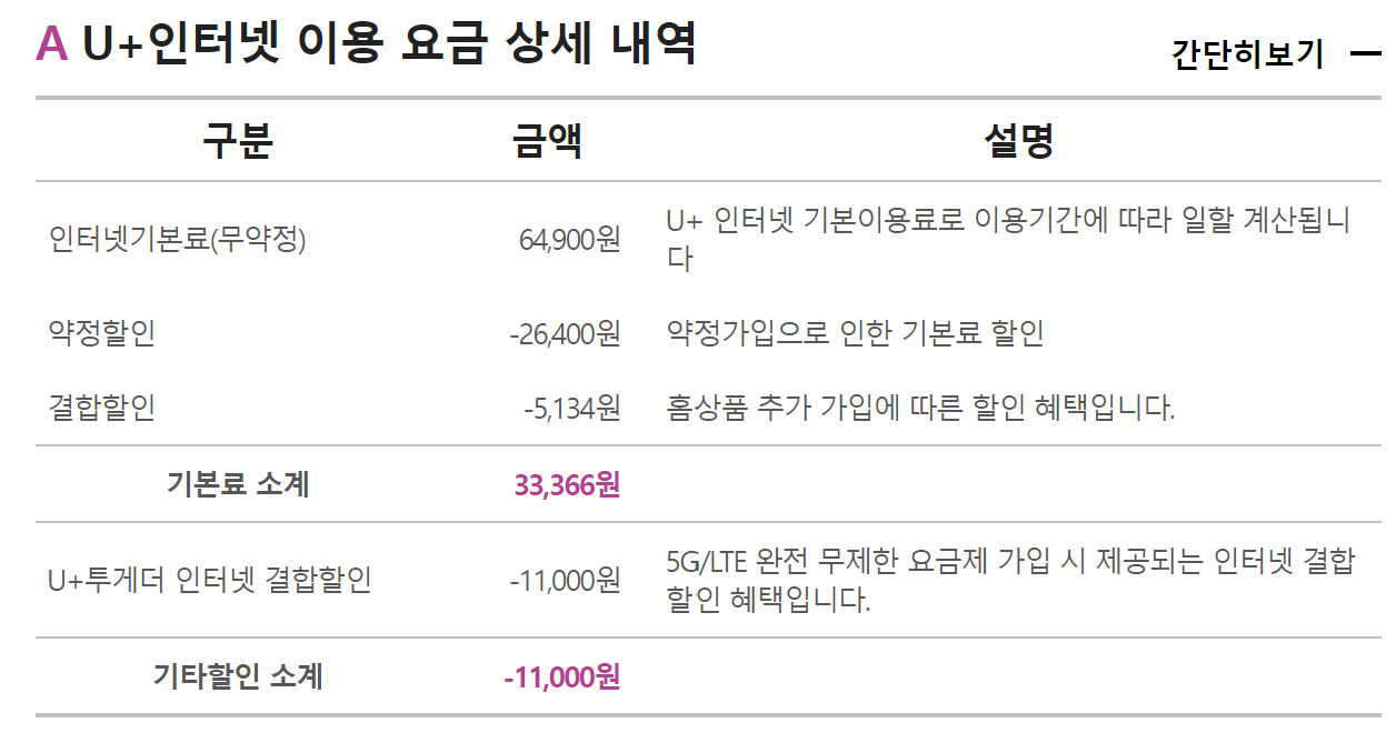인터넷 요금 할인 5,500원 혜택을 받을 수 없습니다^^;;;