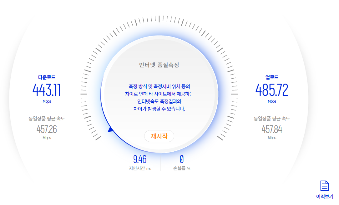 500메가 인터넷에서 400Mbps 이상으로 측정된다면 튼튼한 망이랍니다 ^^