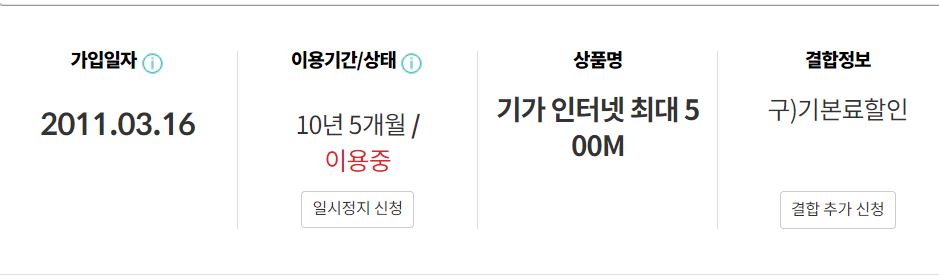 500메가 인터넷은 장기가입자 할인이 월 5,500원 들어가서