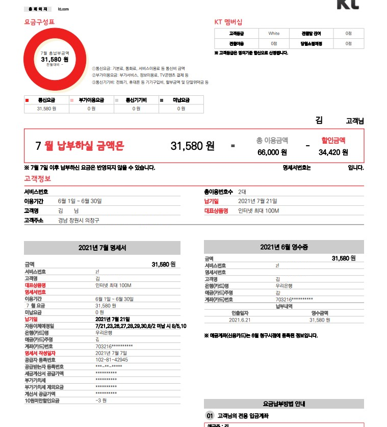 만약 잘 모르신다면 KT요금고지서를 찍어서 댓글에 첨부해주세요~!