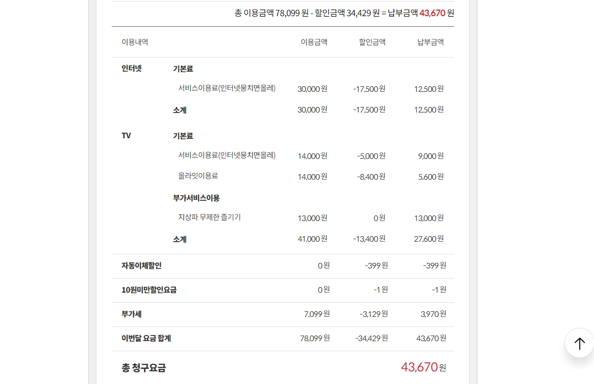 현재 kt 인터넷 + 티비2 월 44000정도 나가는데
