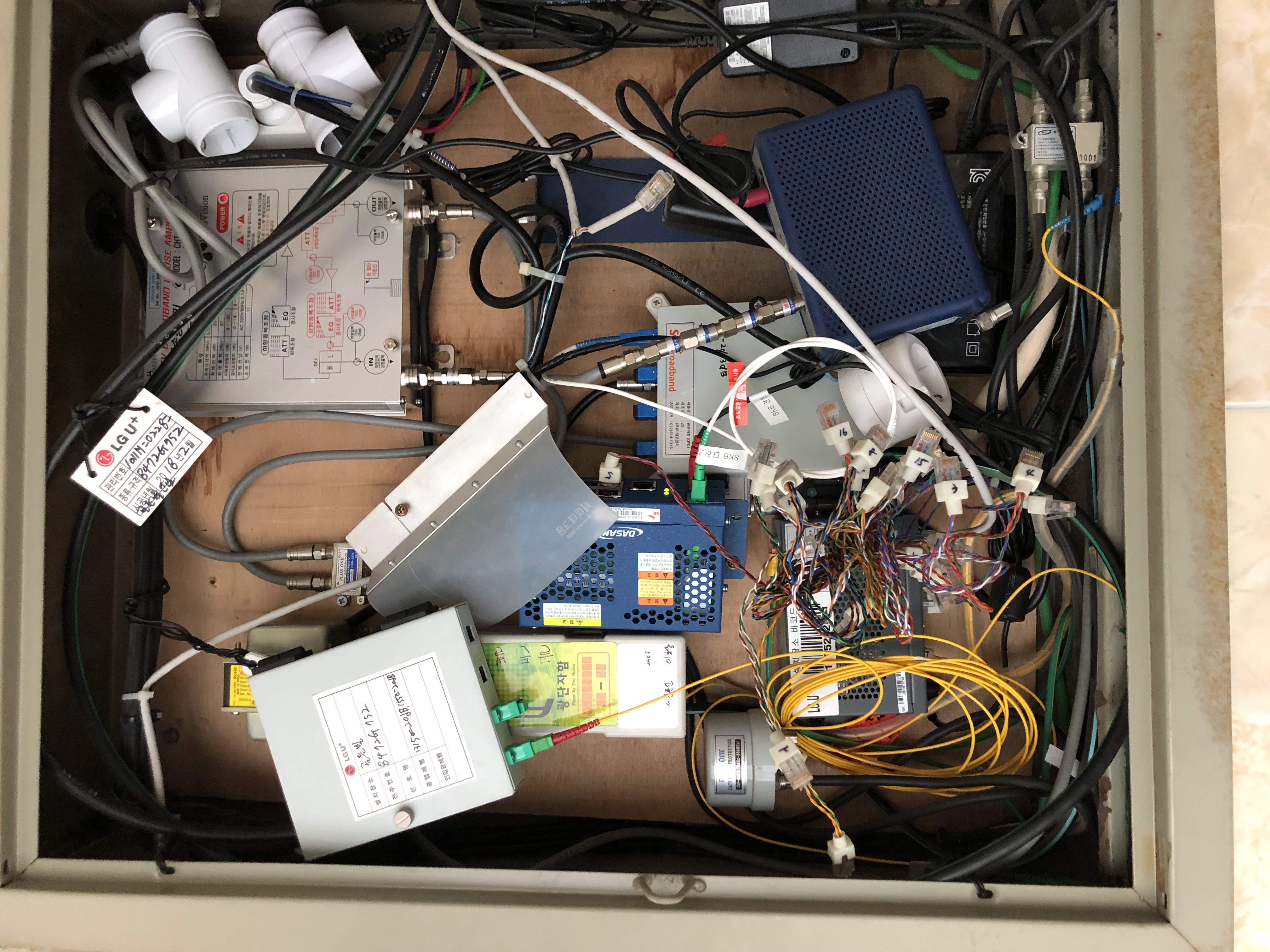 광케이블(FTTH) 기반의 ONT모뎀이 설비되어 있는게 훤히 보이네요~)