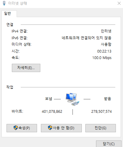 지금까지 확인안하고 있다가 다운로드 속도가 매우 느려 확인해보니 기가인터넷을 사용하고 있음에도 불구하고