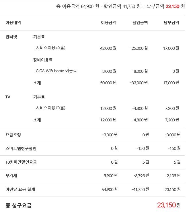 총 7,000원 정도 요금 상승이 있고(각종 결합 할인 유지한다는 전제하에)