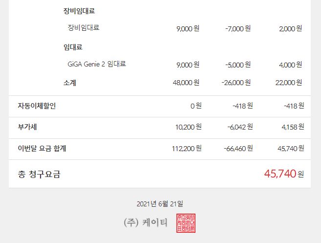 - 기가지니2 (월 임대료 4,400원 -> 이달 말 일까지 3,300원)
