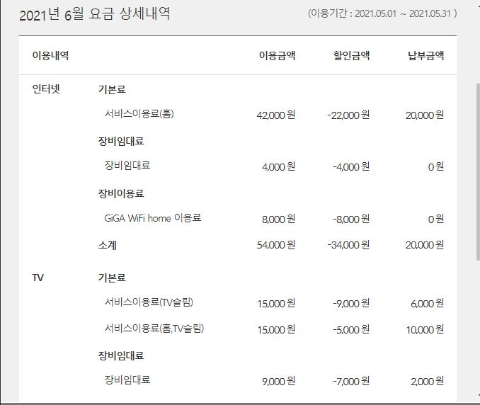 답변해주신 내용을 보고 제가 현재 내고있는 인터넷/티비 요금을 다시 한번 확인해봤는데요.