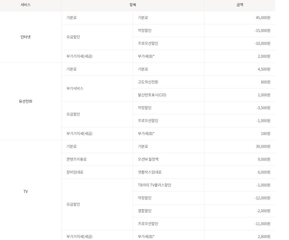 KT는 월정액 총합에 따라 혜택이 달라지기에