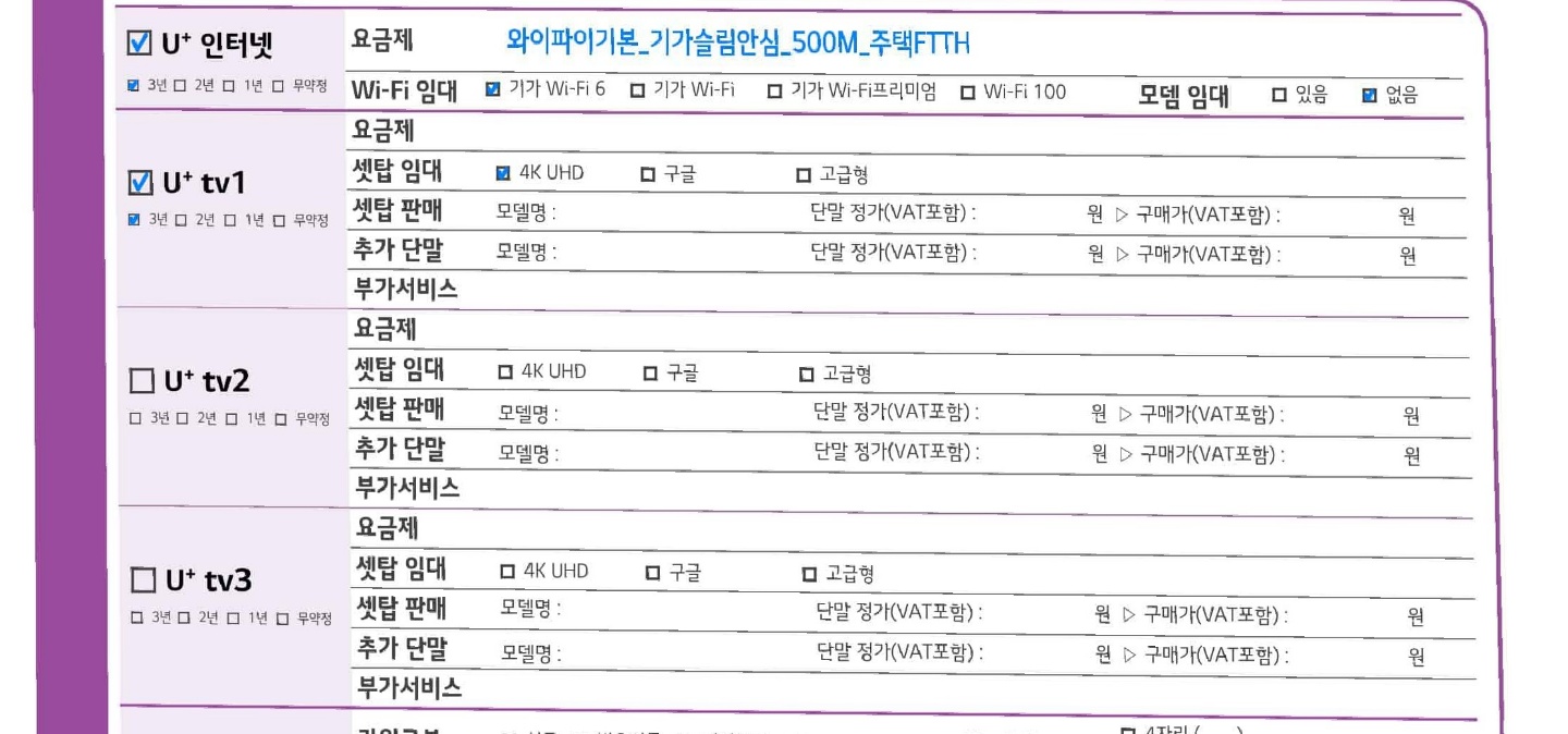 LG유플러스를 일찍이 사용했으면해서 조만간 LG유플러스를 설치받으실거고,