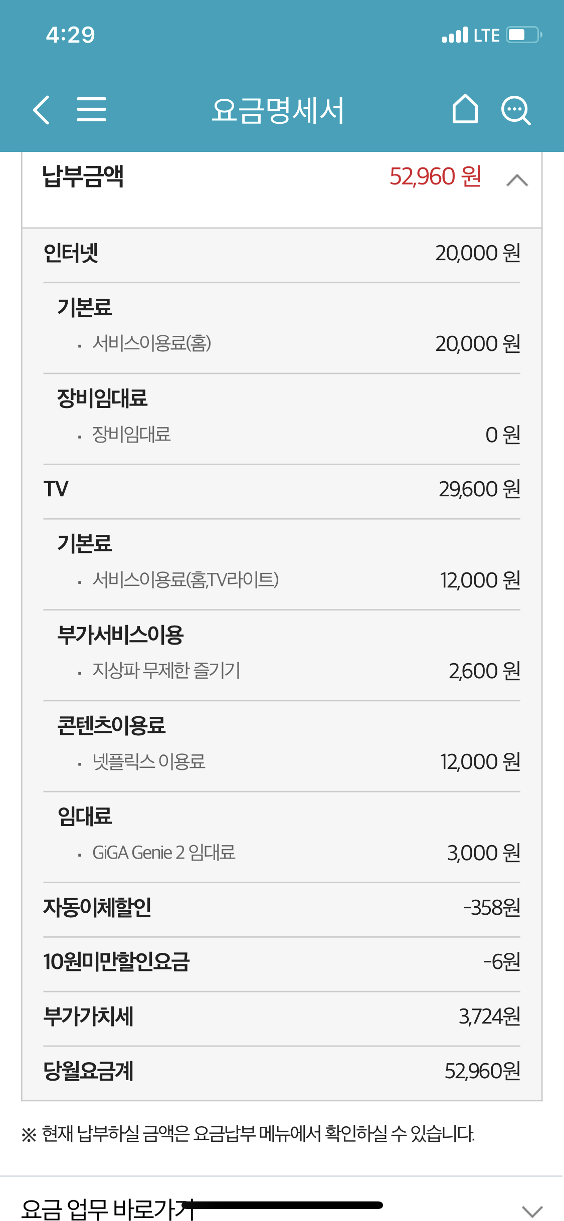 현재 제 요금이고 넷플릭스 지상파즐기기는 제가 따로 결제한거에요!