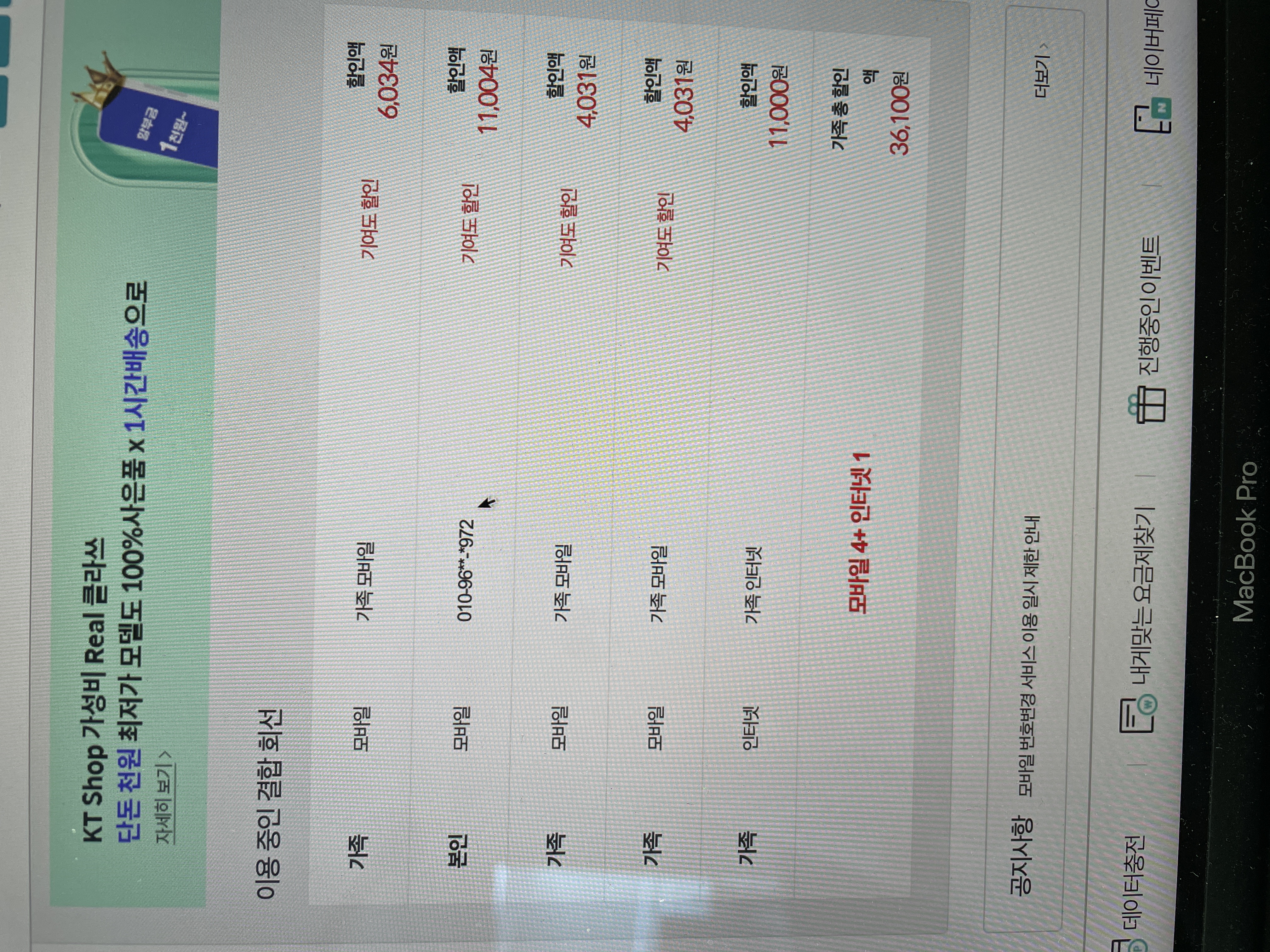 사용 중인 KT인터넷이 있어서 "패밀리" 상품을 1년 약정으로 가입하여