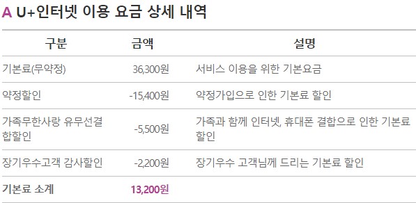 <현재 사용 인터넷 요금 상세 내역>
