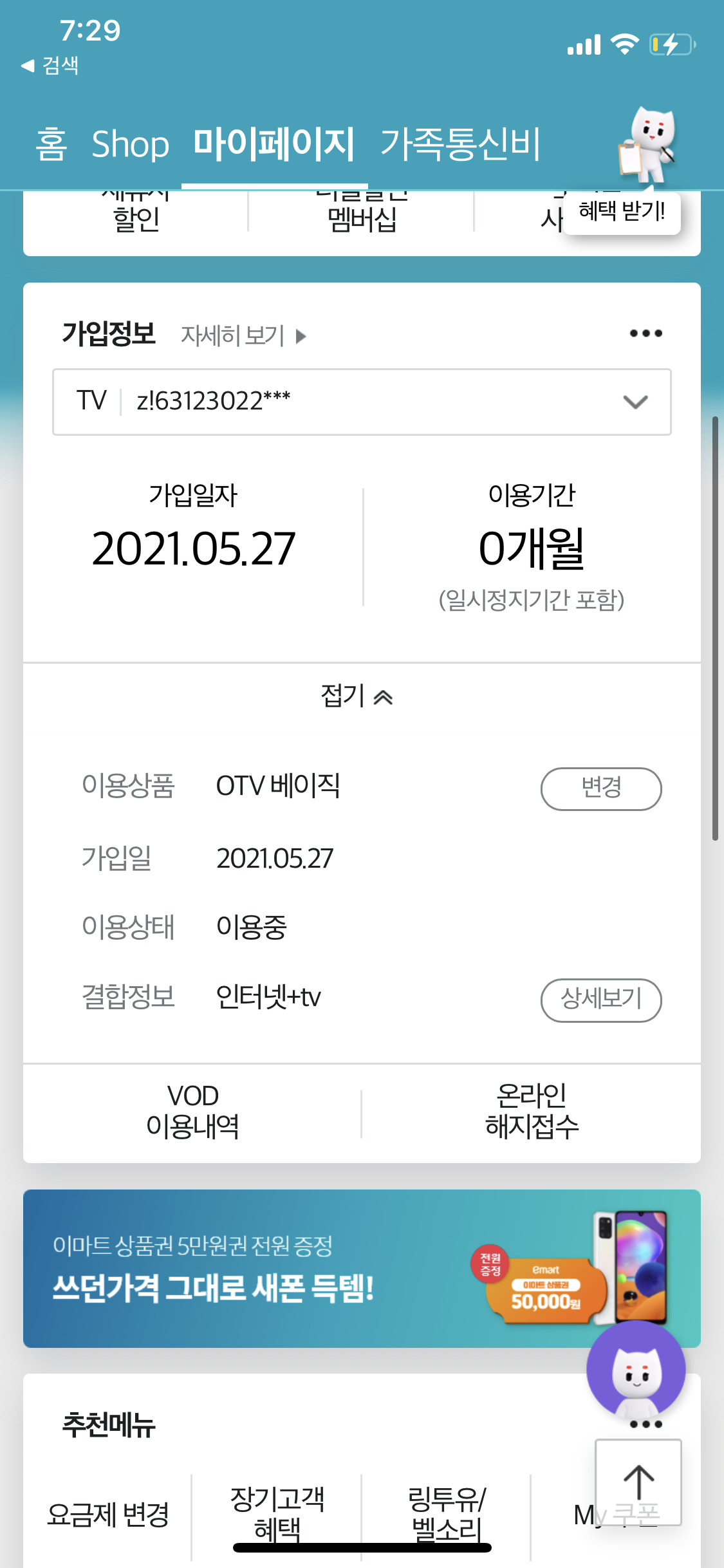 tv 요금제 높은 기준으로 9개월 이용 관련된 부분이 반영이 아닐까 싶어요 !