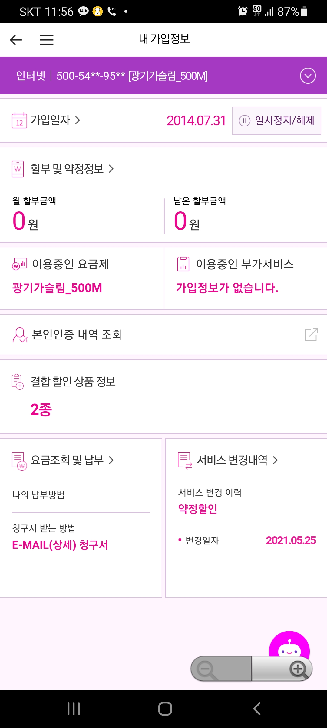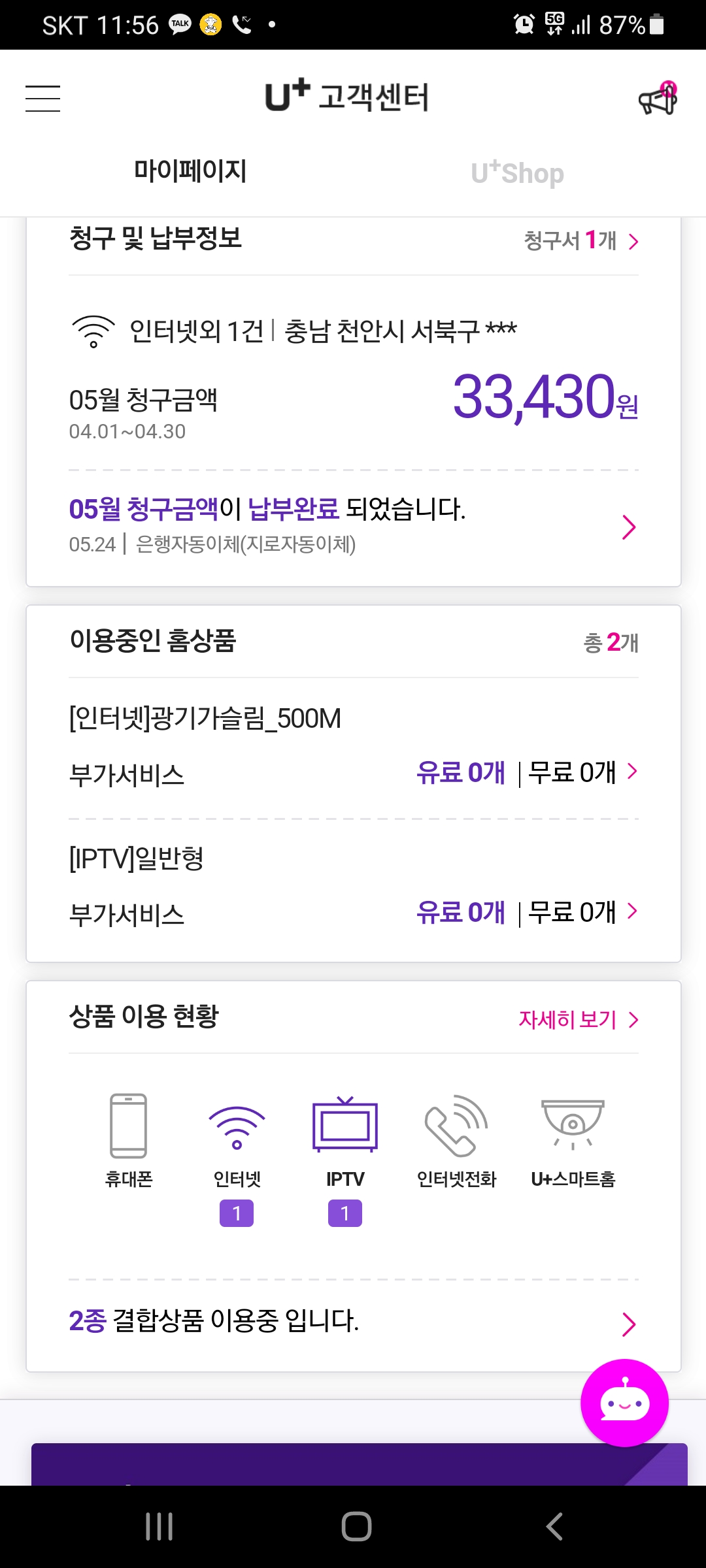 휴대폰과 인터넷은 서로 다른 통신사 상품이였군요..!