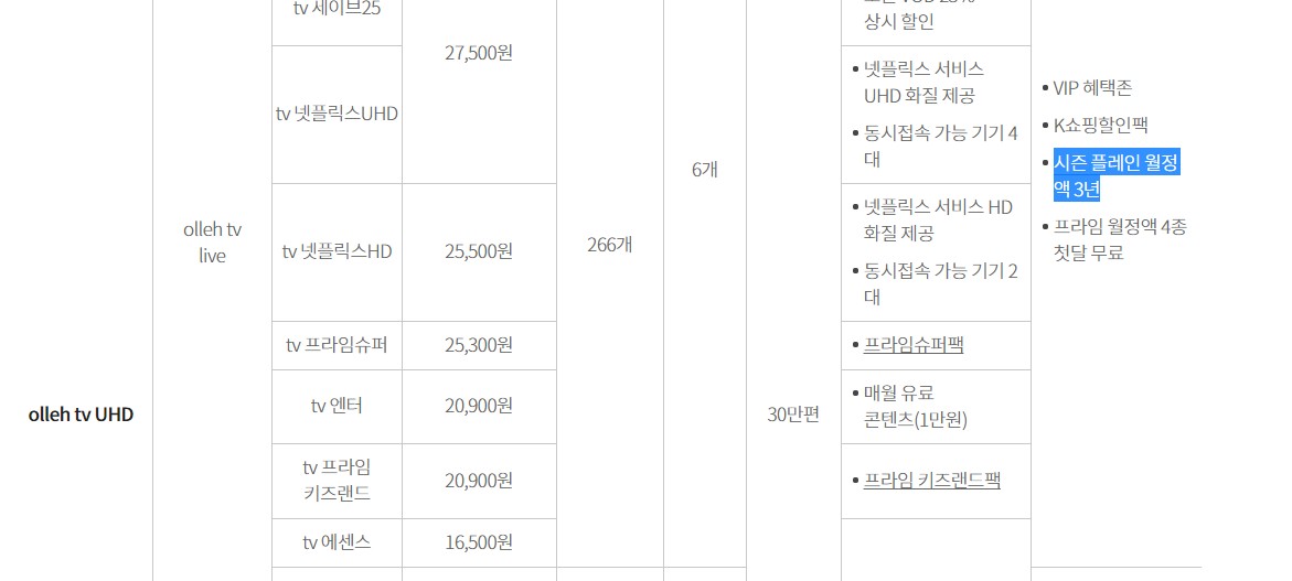 '시즌 플레인 월정액 3년' 혜택을 말하는 거랍니다~!+_+b