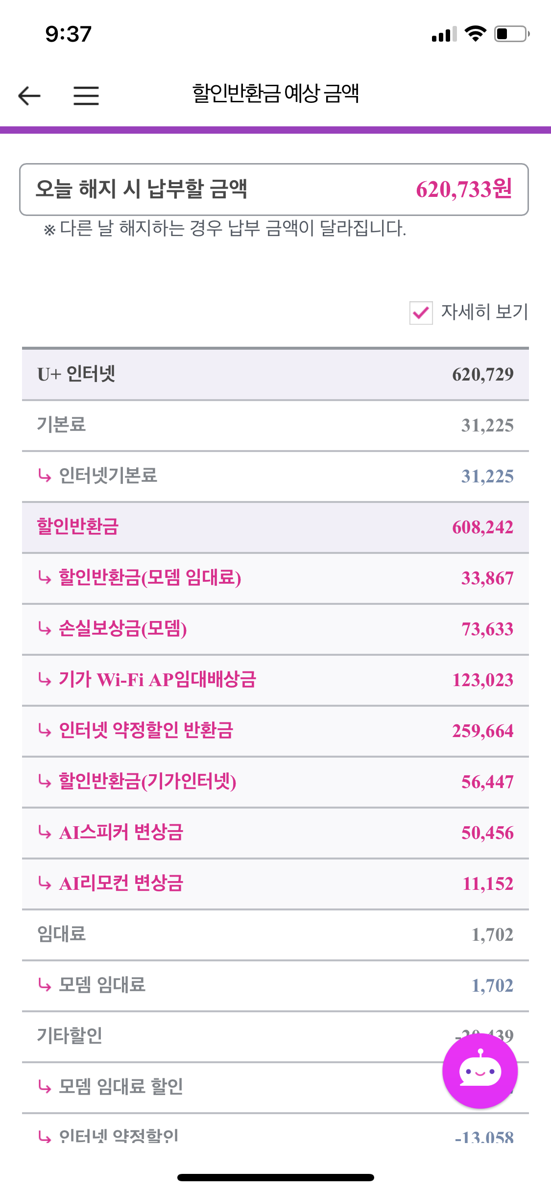 허걱... 무려 90만원 가량의 위약금을 안내 받으셨군요 ㅠㅠ