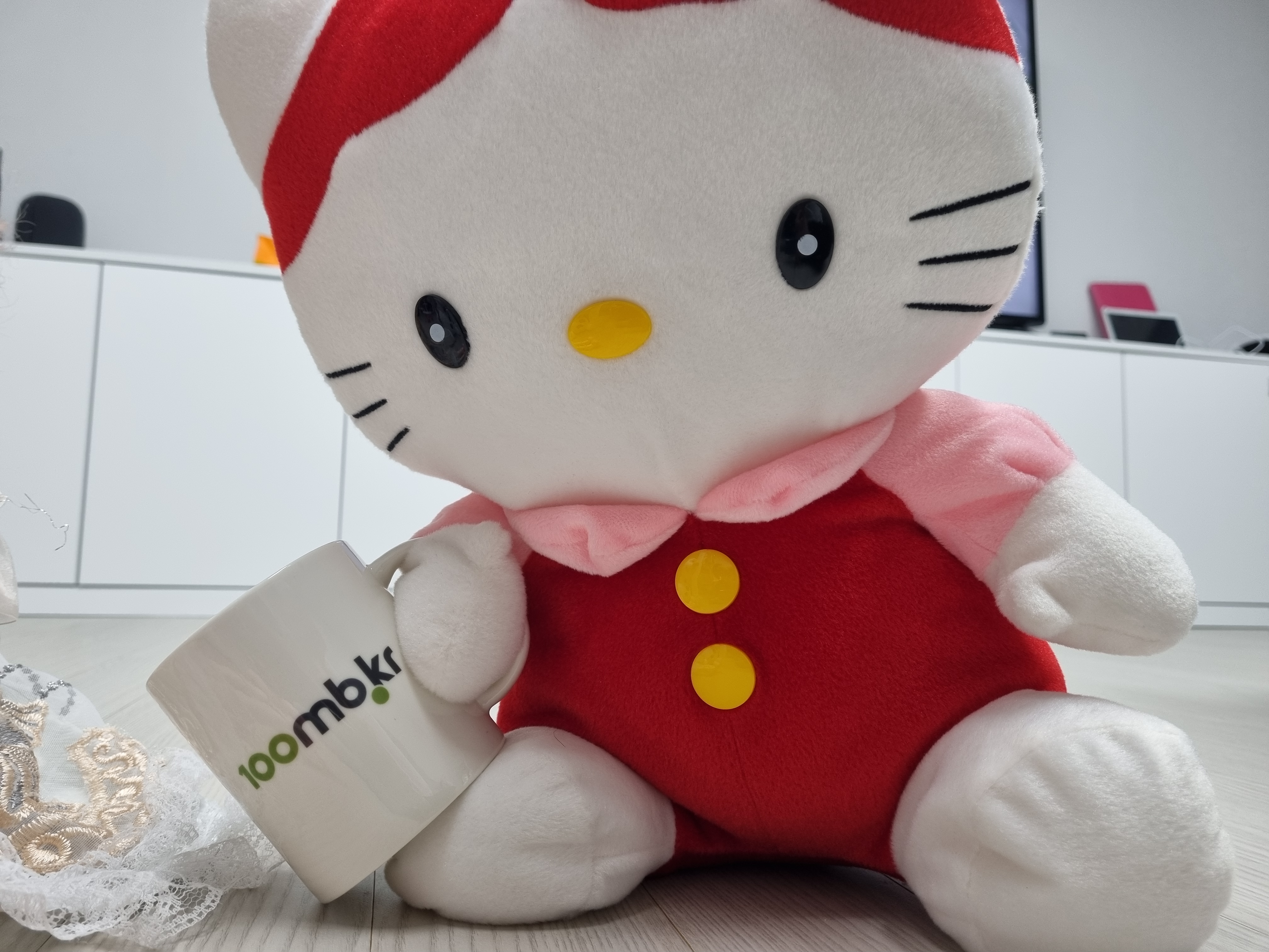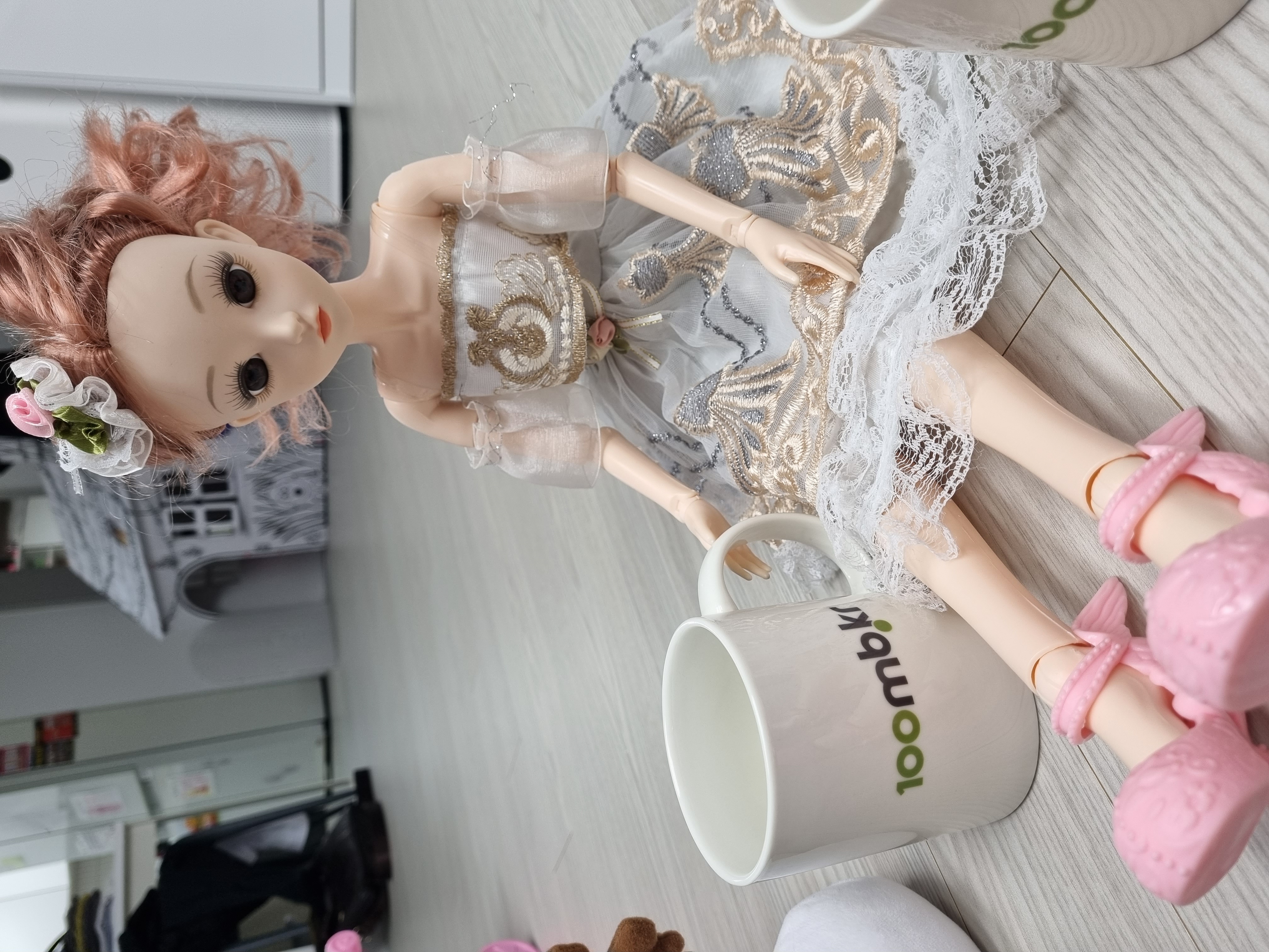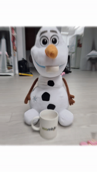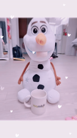 인증샷을 찍으려는데 달랑 컵만 찍으면 좀 허전하여 집안에 있는 인형의 도움을 좀 받아보았습니다