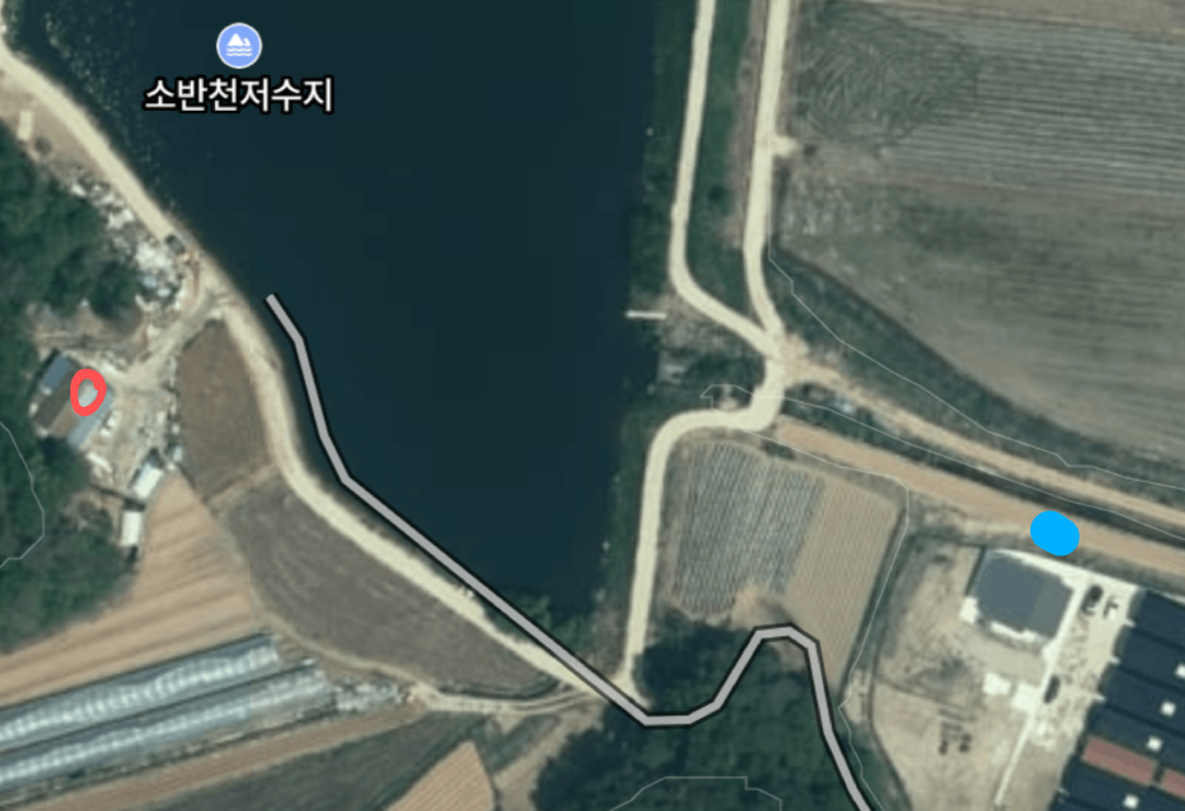 (빨간원이 현재 거주지이며 파란점이 마지막 kt 통신주가 있는 위치입니다. 거리는 도로로 대충 280m정도 되는거 같네요.)