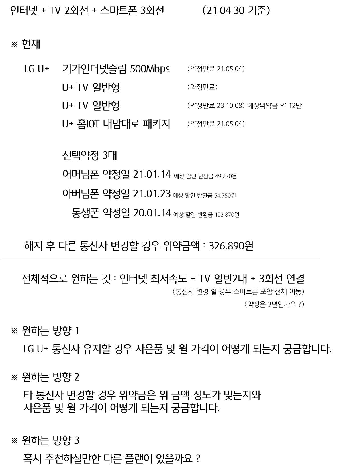 그리고 지금 상황에서 위약금을 내고 몽땅 타사로 갈아타시는 건??