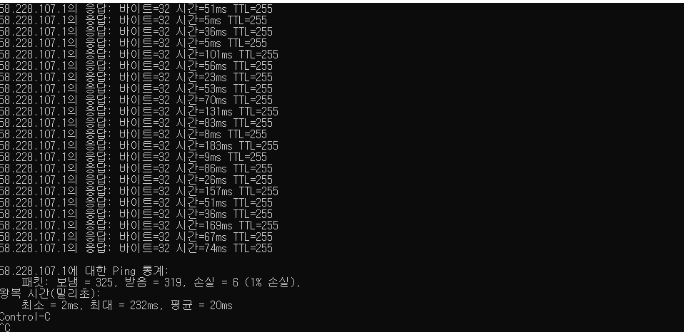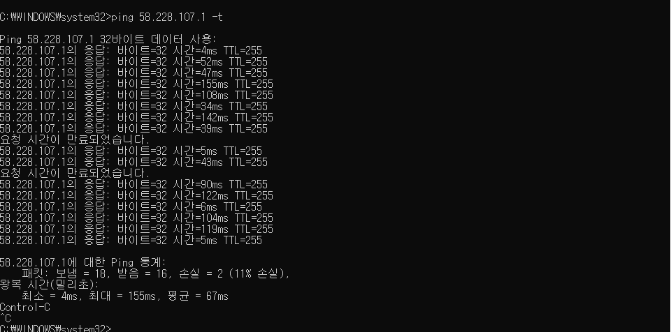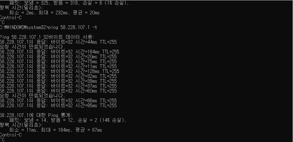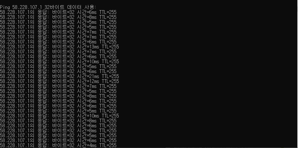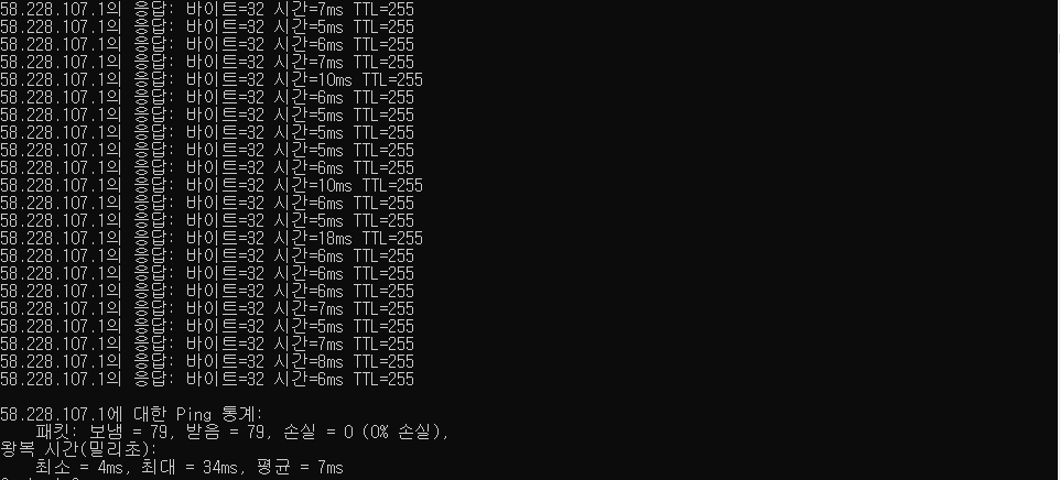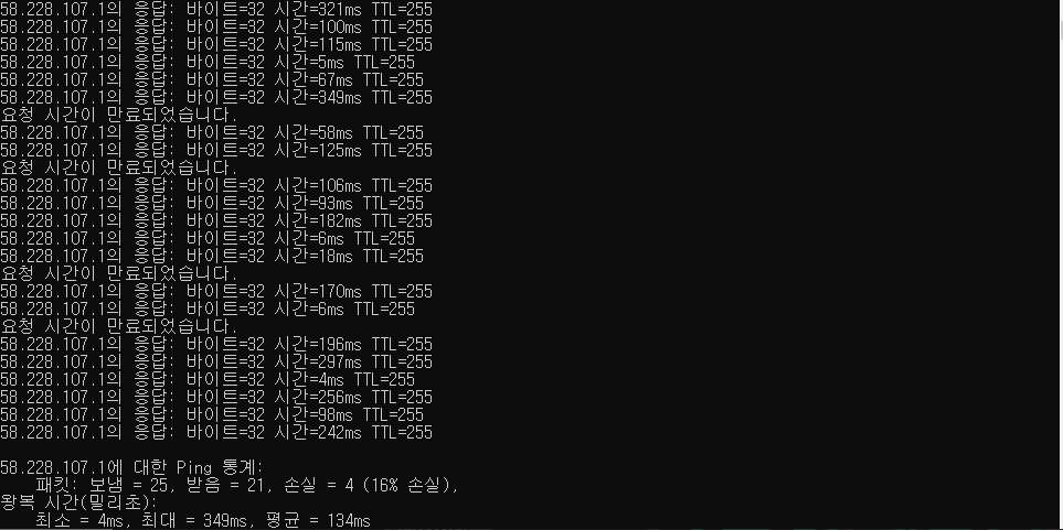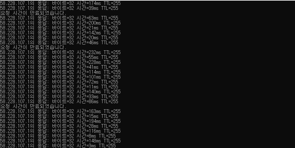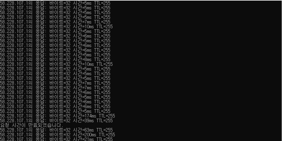 특정프로그램 탓인가 싶어서 출근전에 cmd로 핑 테스트를 설정하고 나와서 그것도 추후에 올려보겠습니다