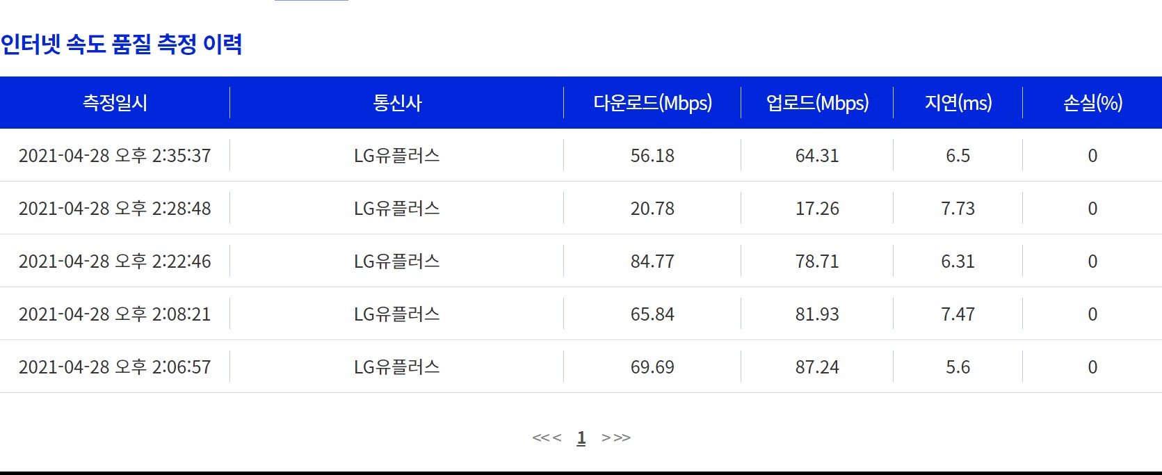 (물론, 측정하실 때는 다른 인터넷 사용이 전혀 없는 상태여야 정확한 값이 나옵니다!)