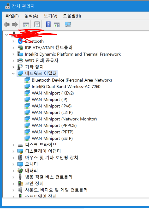 그러면 무언가 창이 하나 뜰텐데 거기서 [네트워크 어댑터] 를 누르신 후,