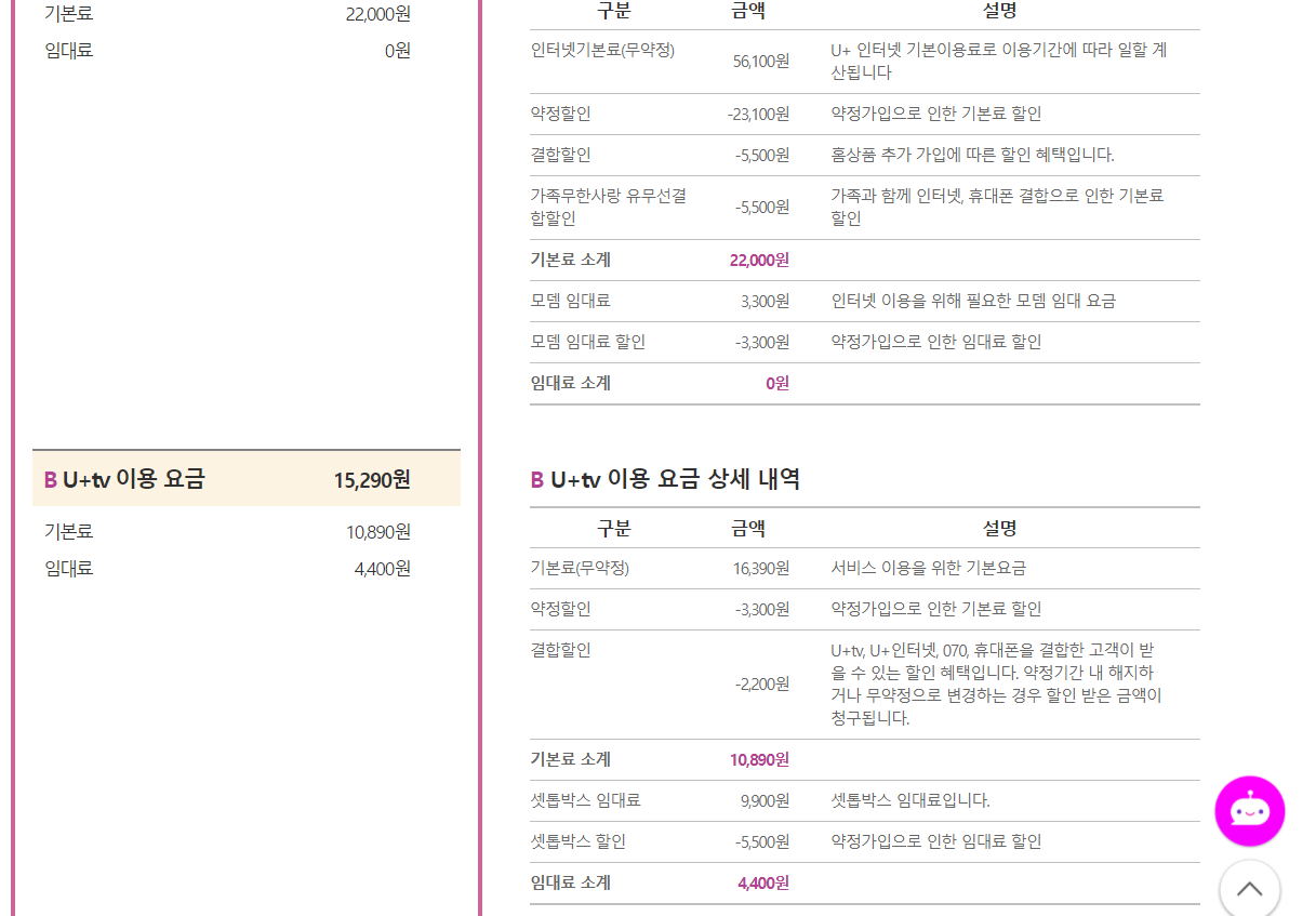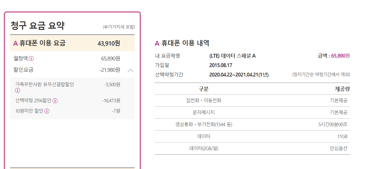 현재 이렇게 쓰고 있고 핸드폰하고 결합해서 5500원씩 할인받고 있습니다
