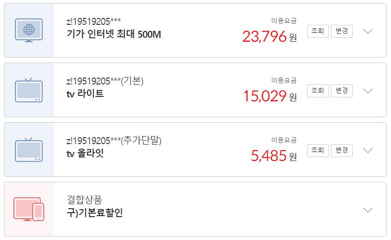 현재 KT 500M 인터넷 및 거실+안방 올레티비를 사용하고 있습니다.