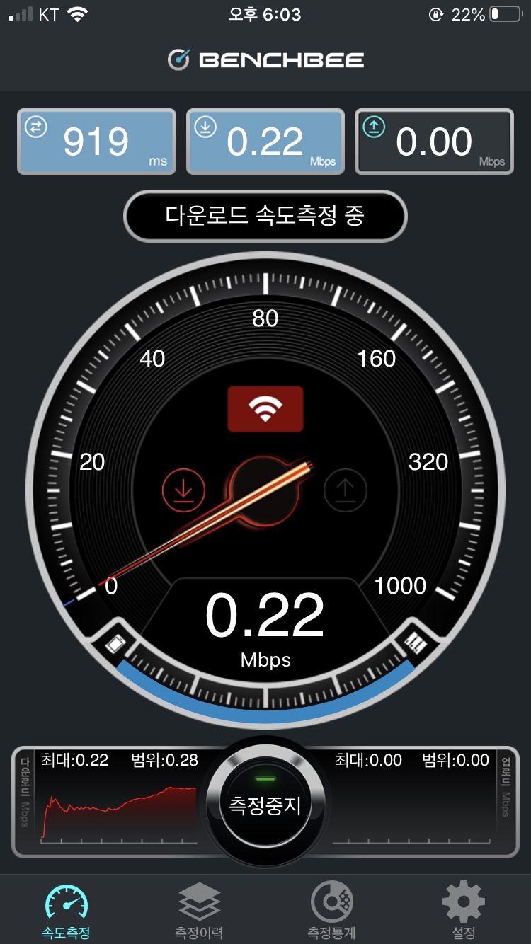 똑같은 어플로 측정해도 속도가 300mb 나오더라구요...
