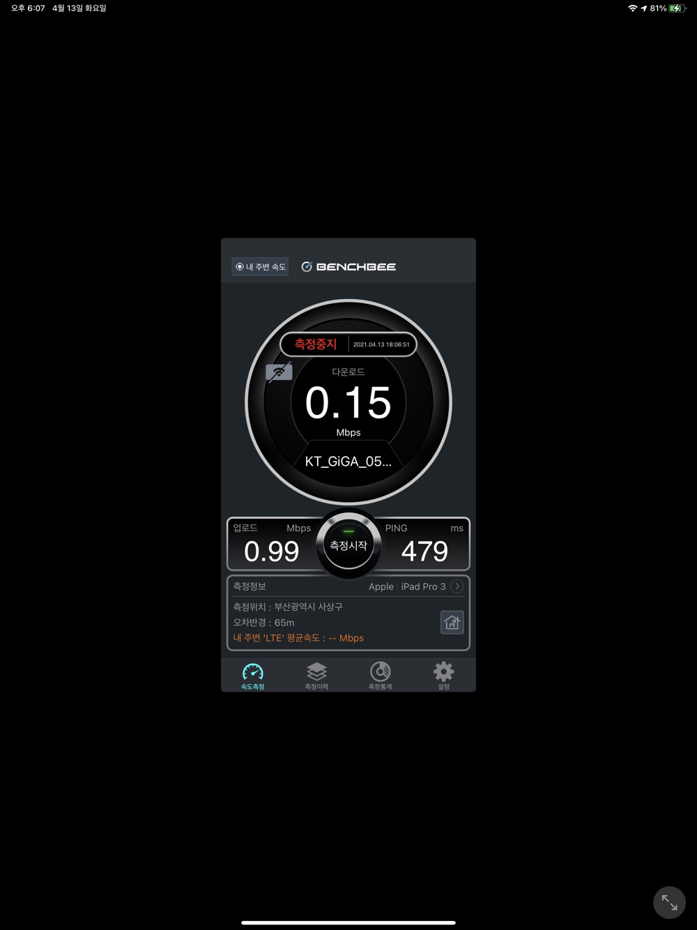 (중간에 65mb 뜨는것은 제가 밖에나갔을때 다른가게에서 측정해본것입니다. )