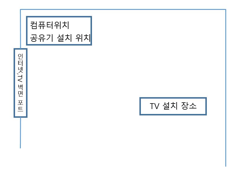현재 제 방 구조인데... 저번에 인터넷 설치후에 컴퓨터는 인터넷 벽면 포트와 가까이 있어 잘 연결했는데