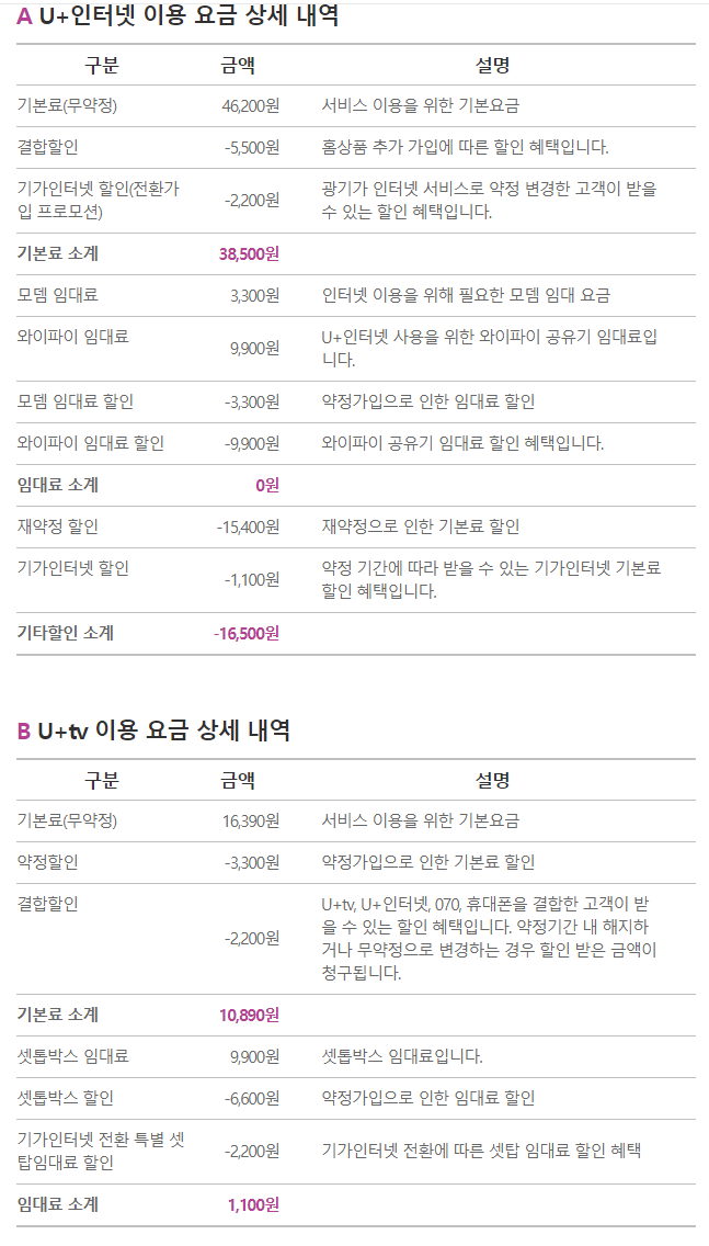 1. LG유플러스 상품을 저렴하게 이용 중이시네요~!