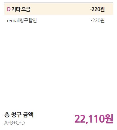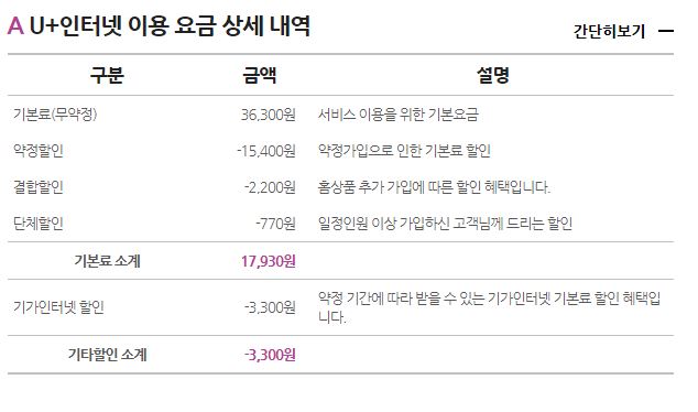 기가급 인터넷이 아닌데도 할인내역이 '기가인터넷 할인'이라고 되어있는 것으로 보아