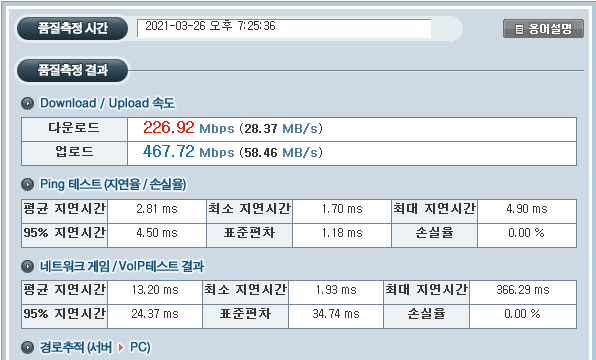 즉, 현재 이용중이신 SK인터넷 원천 망 품질에는 문제가 딱히 없어유;;;