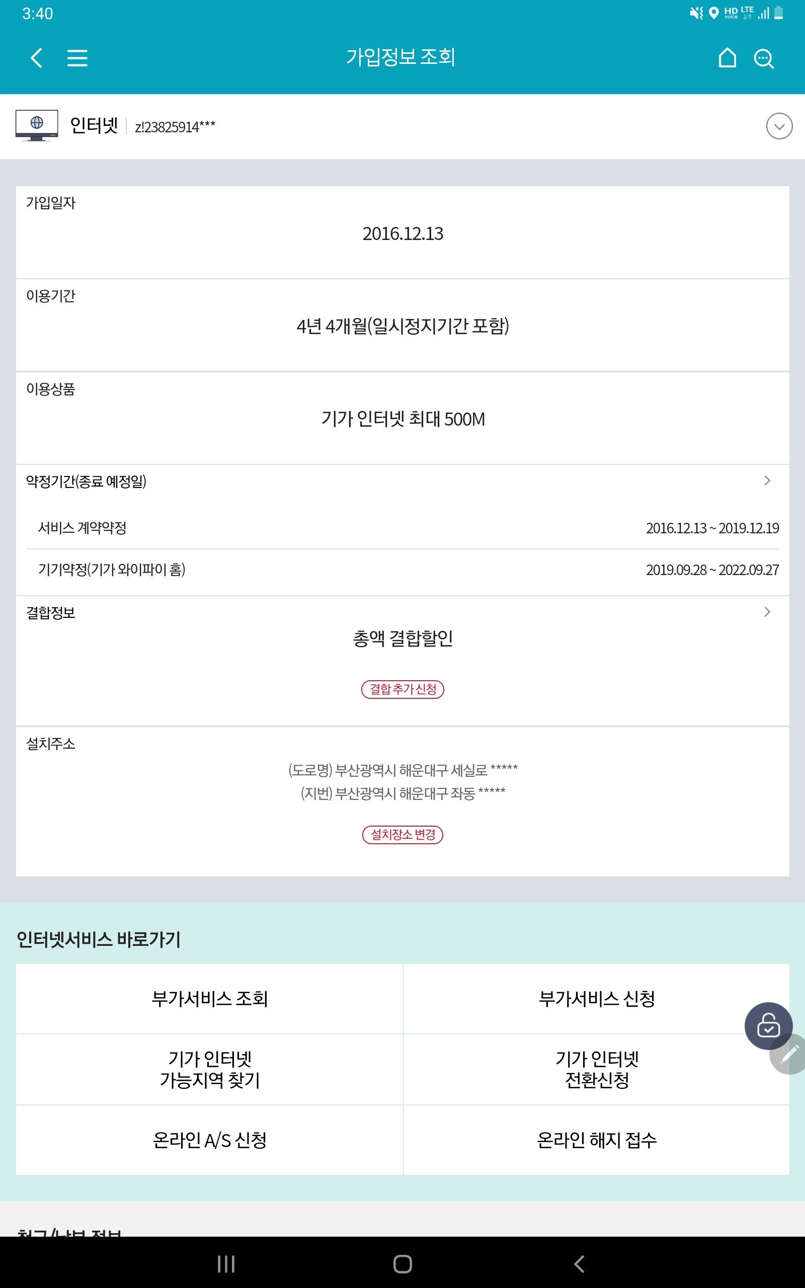 현재 Kt로 인터넷 500메가, 티비 기본, 휴대본 가족 2명 결합했습니다